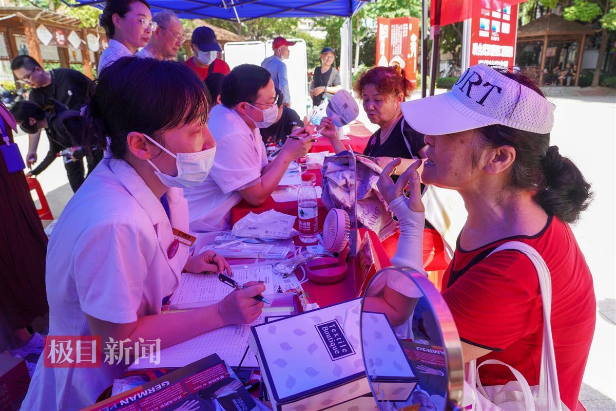极目新闻记者看到,活动现场人气最高的还是由武汉汉阳医院中医科和神经外科专家带来的义诊咨询。