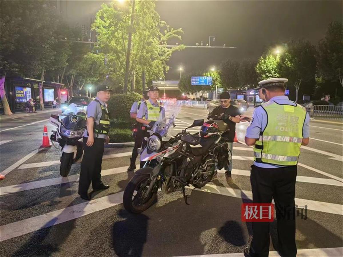 江岸区交通大队联合武汉天地警务站在沿江大道黄浦大街设卡盘查,当晚9时许,江岸区交警邓国锐和吴刚在沿江大道黄浦大街岗位上发现了几辆轰鸣而过的摩托车,民警迅速对几辆车进行拦截,经检查发现,发现一人为无证驾驶摩托车,其余两辆摩托车属于改装车辆。民警依法对几位驾驶员下达违法通知书,责令改装车辆恢复原状后再到江岸区交通大队接受处理。