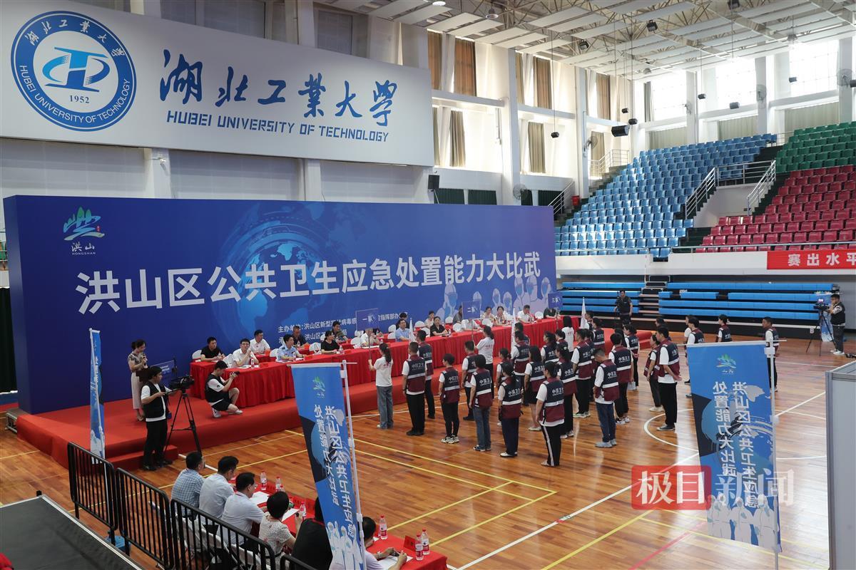省、市、区三级疾控协同联动,街乡、社区、部门、医疗多战线共同参与,理论测试、技能操作多项比拼……7月11日,武汉市洪山区公共卫生应急处置能力大比武在湖北工业大学开启,3支参赛队伍狭路相逢,以赛促学、以赛促训。