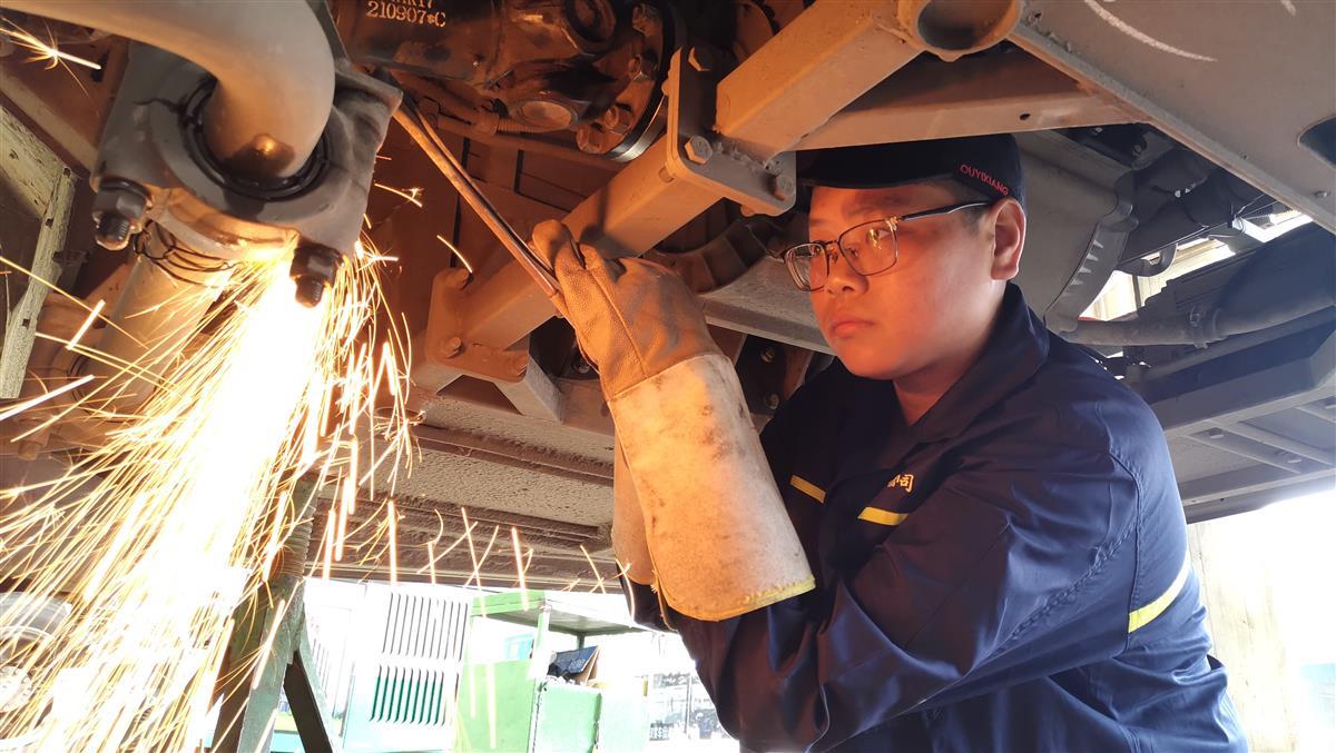 7月12日10时整,汉口游湖公交停保场车间,焊工黄杏全副武装地钻进地槽,对一辆公交车后平衡杆进行切割作业。点燃的焊枪,中心温度高达1300摄氏度,车底温度瞬间升高。切割作业时,烫伤难免,每年夏天,黄杏都会为自己准备帽子、墨镜,厚手套、“京万红”、“凡士林”等,防止电弧灼伤或烫伤。