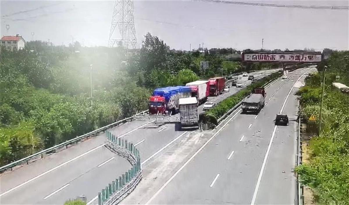 7月12日中午12时许,一辆小客车行驶在沪蓉高速公路钟祥路段, 突然向左变道,与快速车道上行驶的重型货车发生碰撞,所幸无人员受伤。
