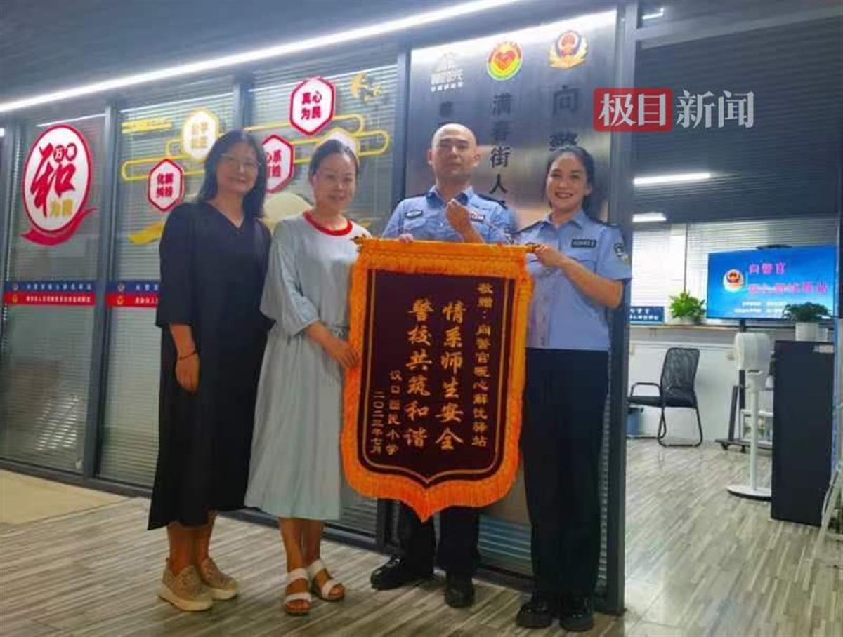 “感谢向警官为学校消除了多年未决的安全隐患和一直以来对学校师生的‘法治护航’。”7月13日上午,武汉汉口回民小学负责人杨书记和李校长来到“向警官暖心解忧驿站”将一面书写“情系师生安全、警校共筑和谐”的锦旗送给了向警官。