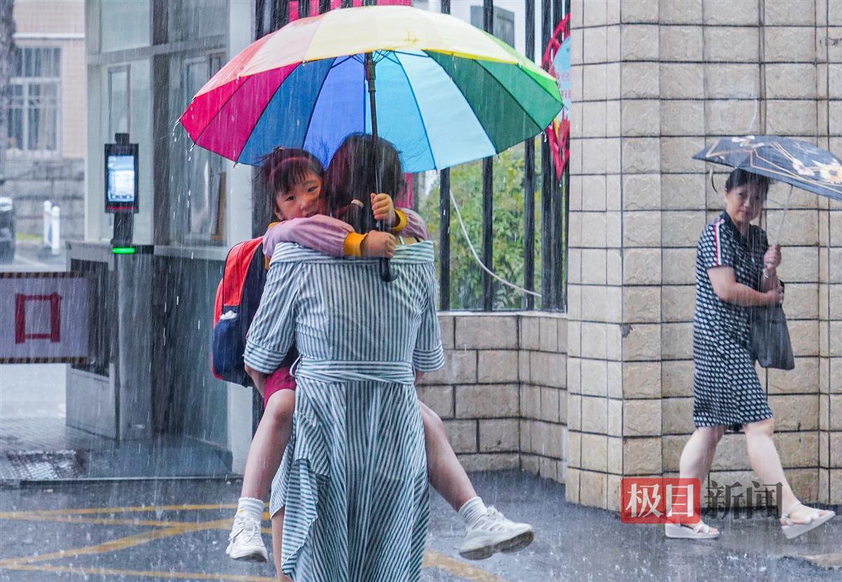 一时雨来急,武汉洪山区雄楚大道上,孩子和家长合作挡雨