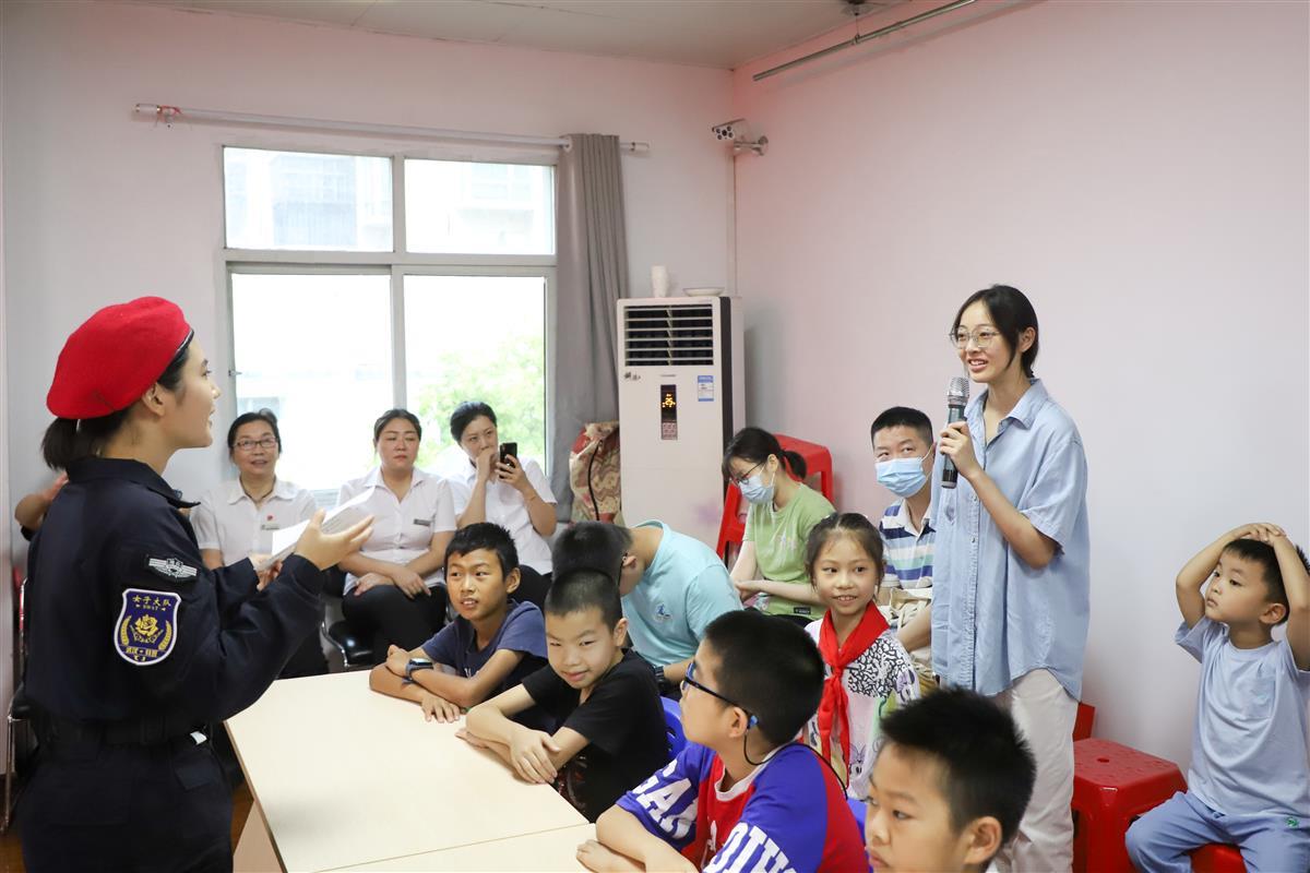 “假期聚会家长喝酒了要开车,你应该怎么做呢?”“路边下车的正确方式是什么?”“外出游玩与家长走散,应该怎样寻求帮助?”暑期,孩子们在家时间增多,先锋队队员徐阳通过问答挑战的方式,与孩子们交流互动。孩子们迅速响应,纷纷举手争抢答题机会。