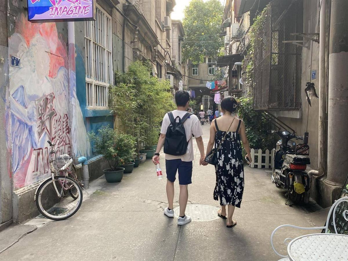 漫步梧桐树荫下,小推车慢悠悠地兜售着莲蓬、绿豆沙,红砖墙旁,里份民居内藏着各式各样的咖啡厅、杂货铺、古着店、小吃店,这些既保存着旧时建筑风格,又兼容多元文化的地标,融合流行元素与市井气息,吸引着Citywalk爱好者前来漫游。