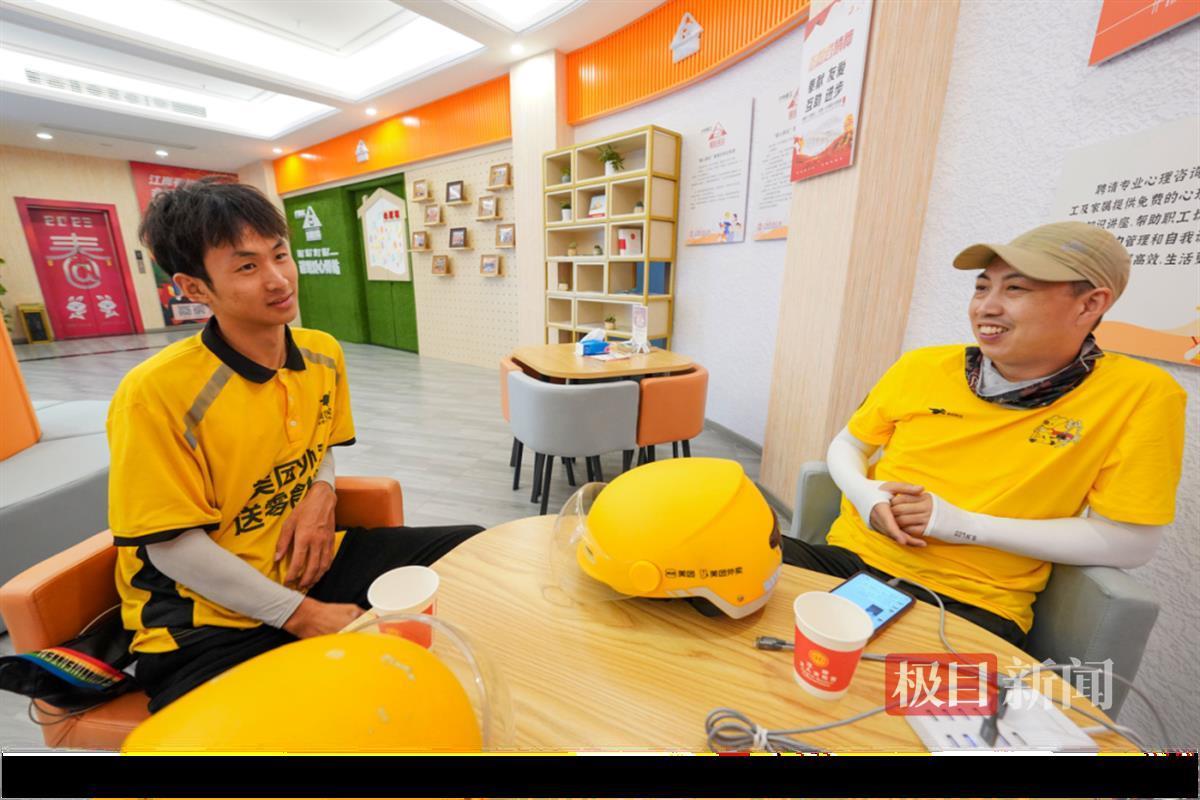 “真舒服,感觉像回到了家一样。”下午2点,完成送餐任务的骑手黄真术走进汉口花园社区户外职工爱心驿站,刚坐定,便有工作人员递过来一杯酸梅汤。“外卖小哥其实来自天南海北,但现在都在这个爱心驿站找到了一个‘新家’。”