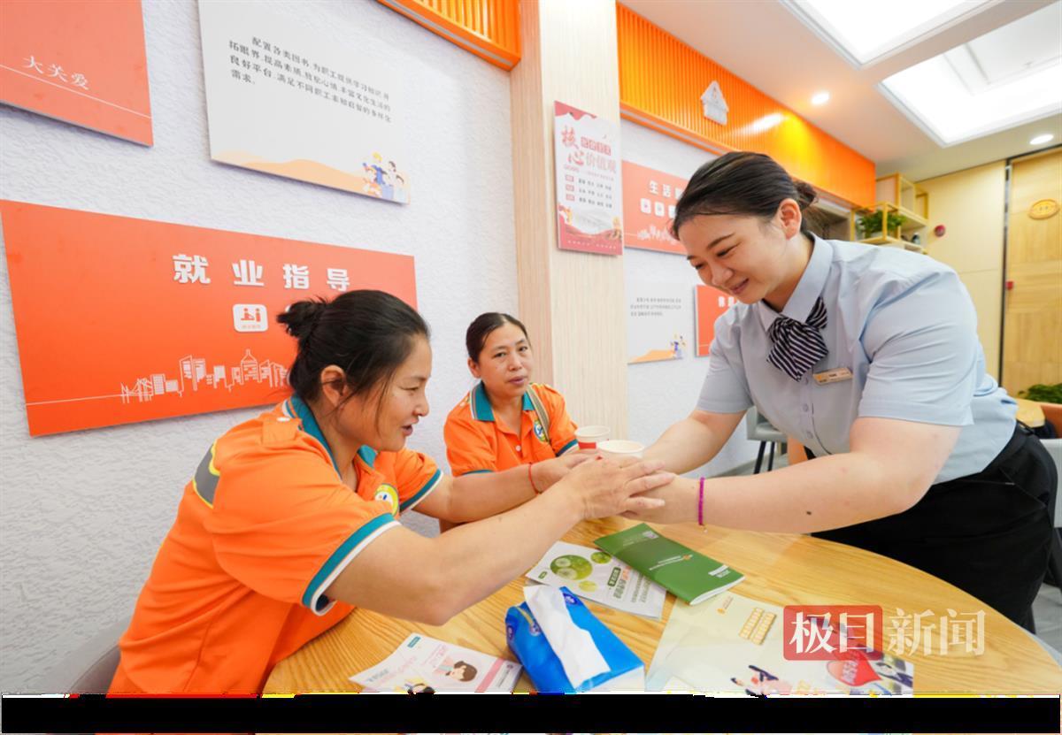 “这儿环境好、设施全。我们有了遮风挡雨、喝水歇脚、加热饭菜、看电视读报纸的固定场所,方便多了。”江岸区保洁工人罗九红说,今年夏天,她和同事们在工作间隙有了好去处。