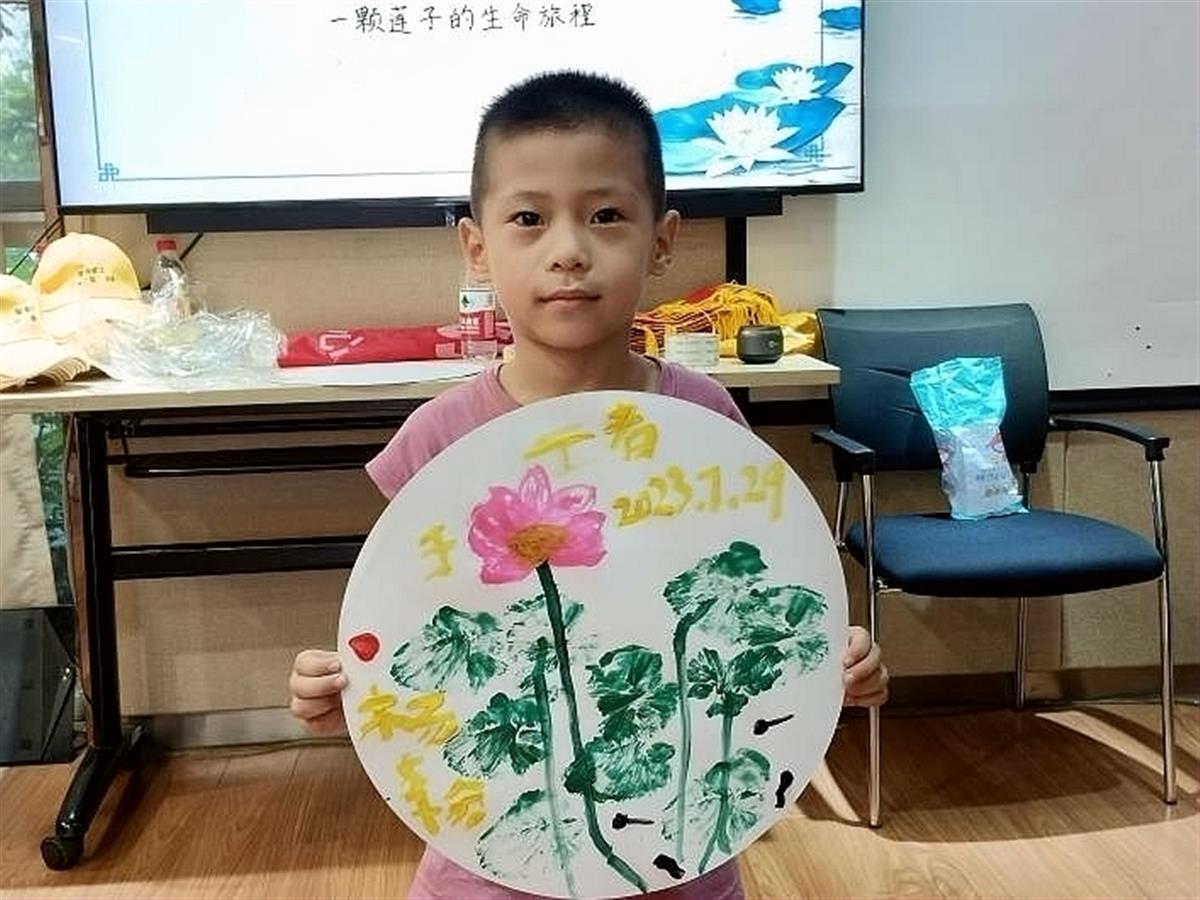 馨泰社工中心志愿者亚菲和家长孩子们一起走进科普绘本故事《一颗莲子的生命旅程》,从一颗莲子入泥讲起,讲述它发芽、长叶、开花、结果、成熟到莲子再次入泥的生长过程。亲子家庭在完整了解莲的科普知识之外,还了解到莲的历史文化,体会莲的“出淤泥而不染,濯清涟而不妖”的高洁品质。