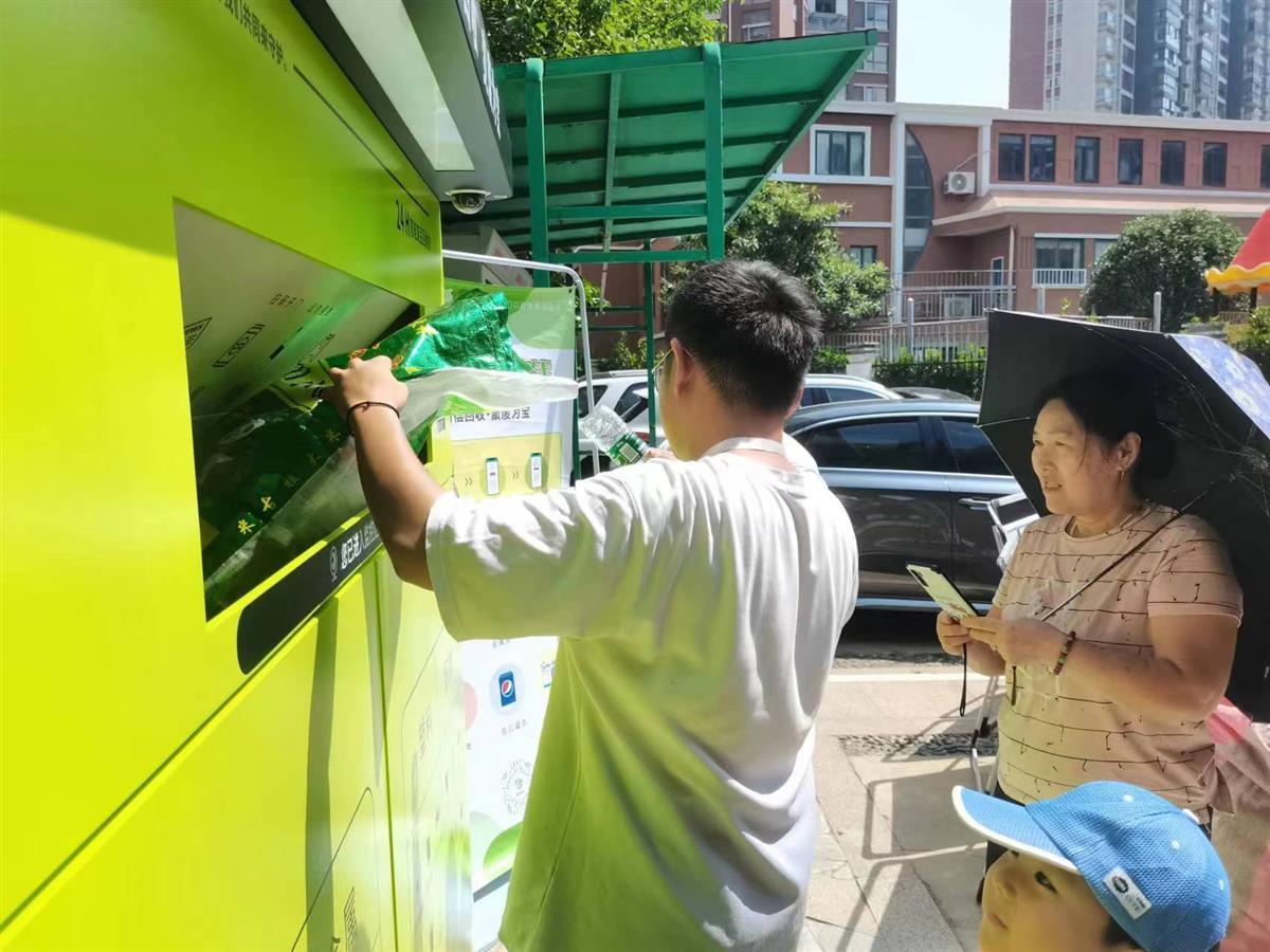 “现在正好孩子们放暑假了,天气炎热家里的啤酒瓶、饮料瓶还有各种快递纸箱堆得太多没地方处理,以往总是喊人上门收或者自己找拖车送到很远的再生资源回收站,在小区内设置方便多了,家门口就能处理。不仅当天就可以处理掉可回收垃圾,也不用到处堆放到楼道影响美观。”居民陈爹爹高兴地说。