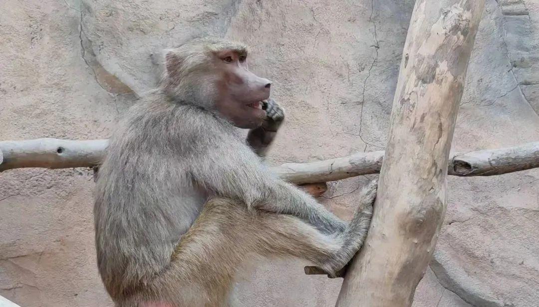 △阿拉伯狒狒正在适应武汉动物园的新家。