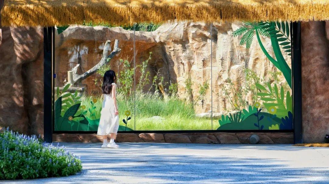 内场里,游客透过巨大观览玻璃可近距离观赏动物,同时还可看到黄沙覆盖的阿拉伯“平原”、高耸的方尖碑以及铭刻着象形文字的古旧石壁;另一面是科普墙,为游客介绍相关的知识与文化。