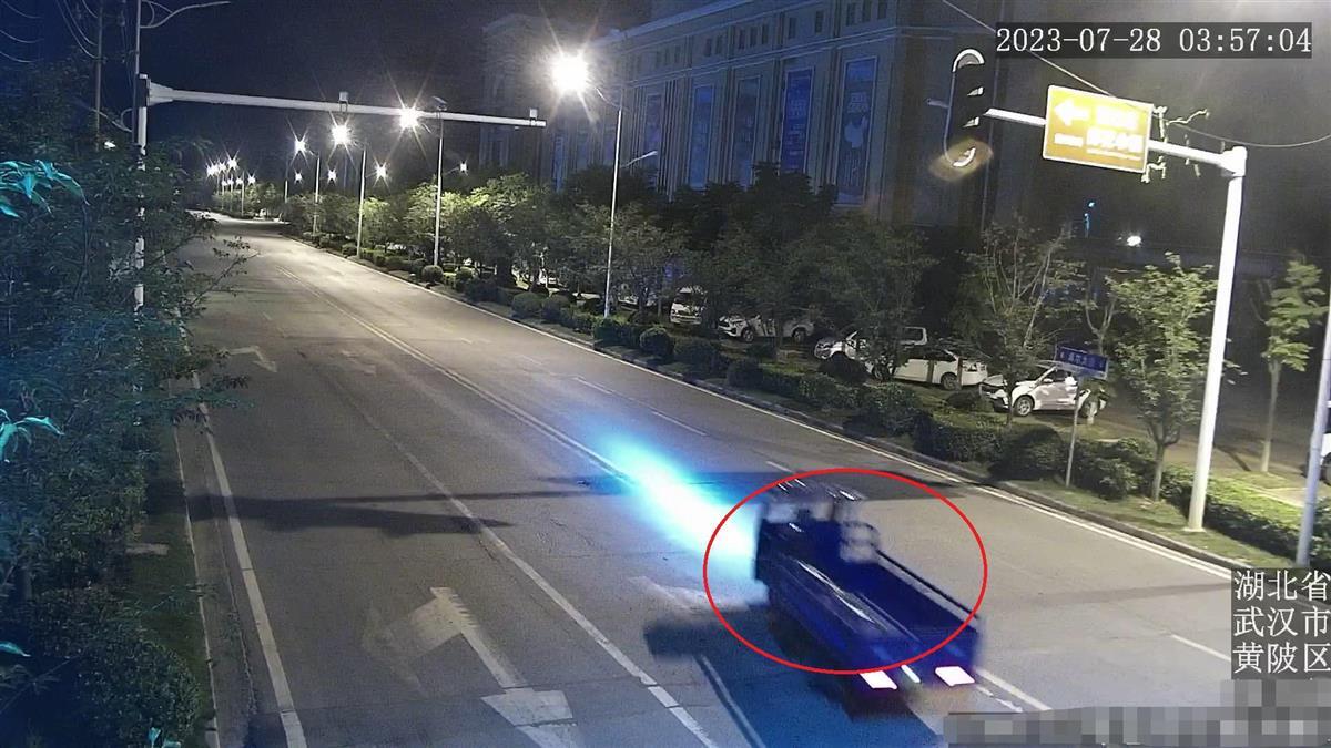 民警立即展开侦查,通过调阅案发现场及周边大量监控发现,7月28日凌晨3时53分,一名男子骑着一辆自行车出现在案发现场,该男子将自行车停在路边,观察四周无人,径直走向被盗车辆。没多久,男子便将三轮摩托车开了出来,随后将自行车放在三轮摩托车车斗内,驾驶被盗车辆离开。