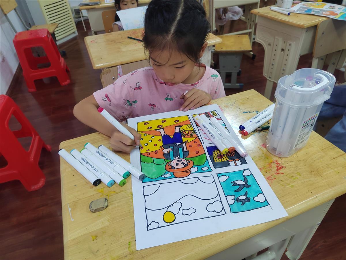 2个小时后,一幅幅创意感和色彩感十足的绘画作品跃然纸上。