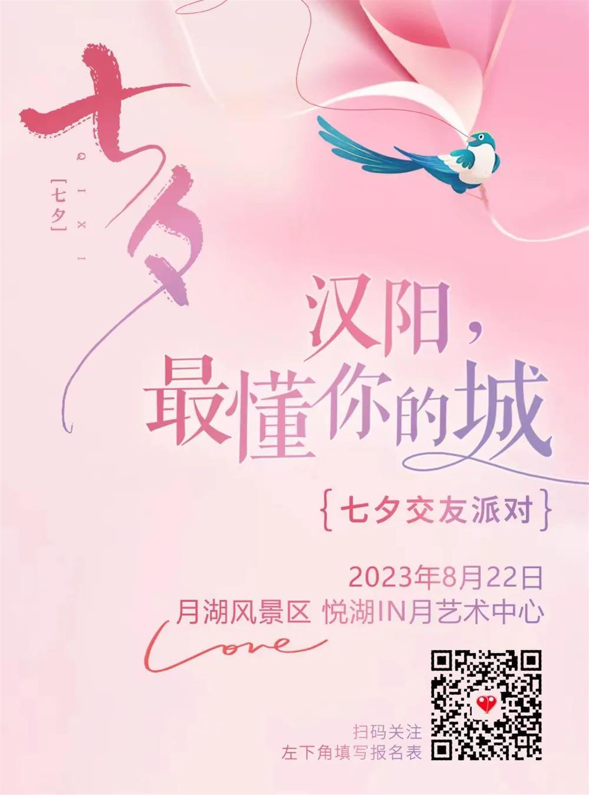 8月22日七夕当天,汉阳区联手极目相亲大会,于月湖落户公益婚恋交友基地——“汉阳知音相亲基地”,将举办大型相亲活动“汉阳,最懂你的城 七夕交友派对”,活动将定向邀约市、区内重点企事业单位的青年职工参与,通过趣味互动,传达年轻人的心意,促成交友。只要你是适龄单身青年,就可以报名参加。报名方式可扫扫文内图片二维码。