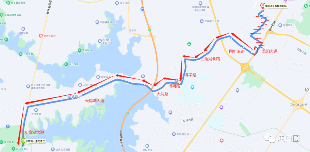 1、起止点由知音湖大道花博汇至龙阳湖东路陶家岭路调整为知音湖大道花博汇至知音湖大道花博汇(环线)