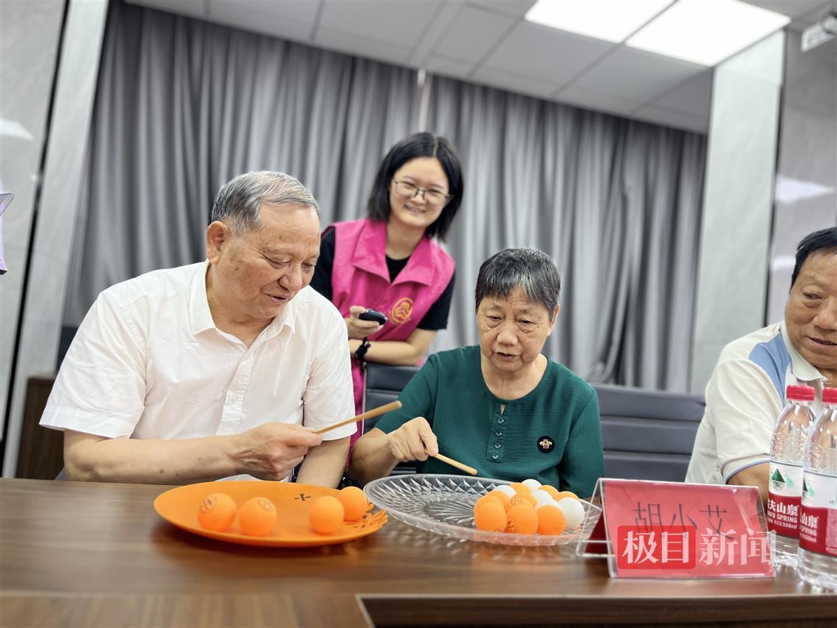 随后,现场又组织老人们玩起了双人夹乒乓球游戏和猪八戒吃西瓜游戏。“今天很开心,和老伴浪漫地体验了一把年轻人约会的感觉。”潘老笑着说道。