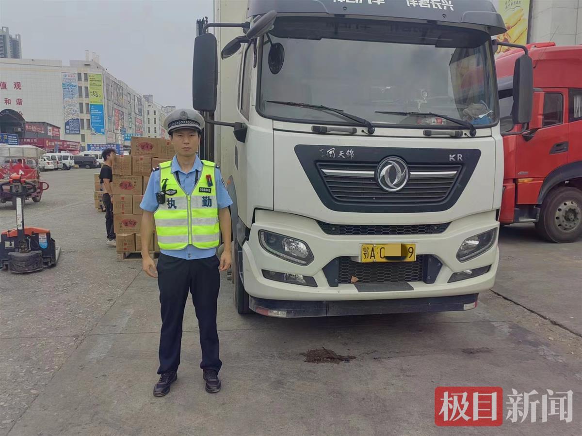 8月21日8时许,洪山区交通大队三中队接到大队指挥中心通知,号牌为鄂AC***9的大货车涉嫌疲劳驾驶,目前该车辆正在辖区行驶。接到指令后,三中队立即对该车的行驶轨迹进行分析,锁定范围,最终在白沙洲增益冷链大市场内成功查获嫌疑车辆。