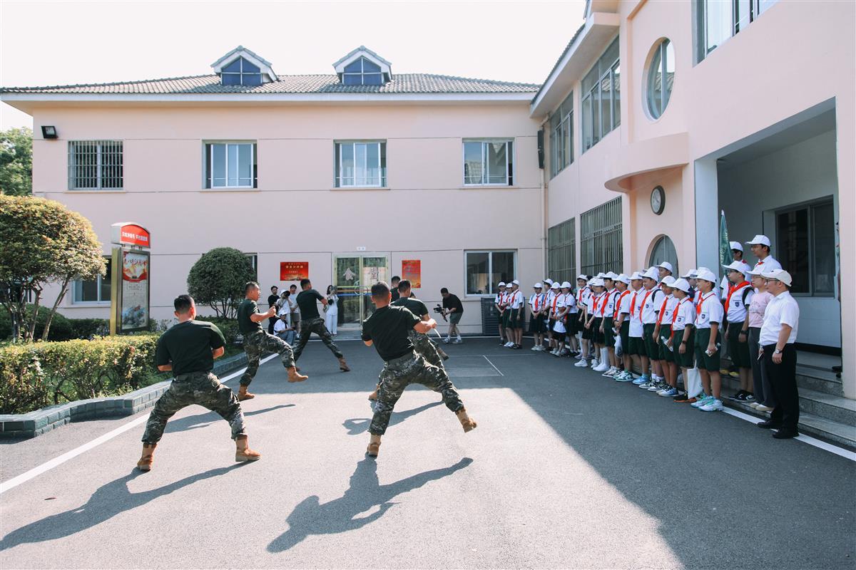8月22日,武汉经开外国语学校初中部707班近40名师生来到武警湖北总队武汉市支队某中队,开展“强国有我,迷彩有约”暑期社会实践活动。