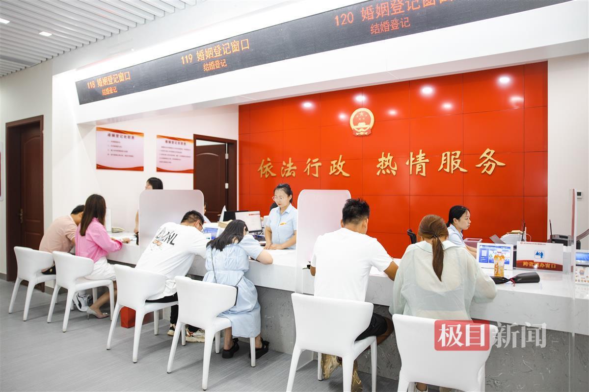 “早上7时52分,第一张结婚证就打印出来了,全天有近100对新人登记结婚。”武汉经开区民政局婚姻登记办公室工作人员刘梦莹说,“我们提前布置了办证大厅,特意为新人们准备了拍照的道具,希望能给他们在这个特殊的日子里留下美好的回忆。”