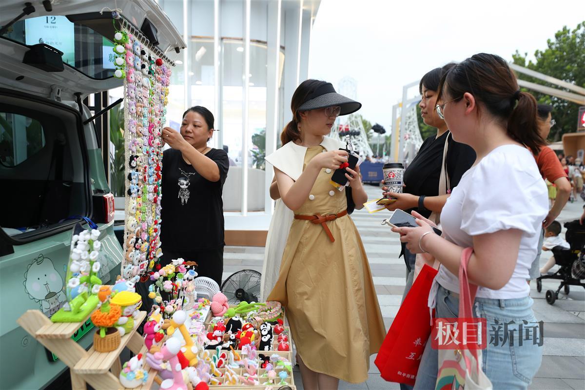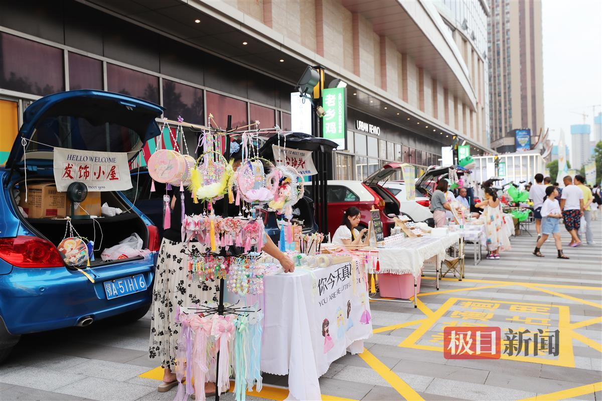 在传统夜市的基础上,金地趣街还引入“车尾箱”夜市。10余台汽车后备箱被打造成一个个微缩版的精致商店,甚至是创意工厂,极具个性——手作好物、咖啡甜品、日用杂物、古着服装、潮流配饰……每一个“后备箱”都售卖着不同的产品,吸引着市民游客驻足。