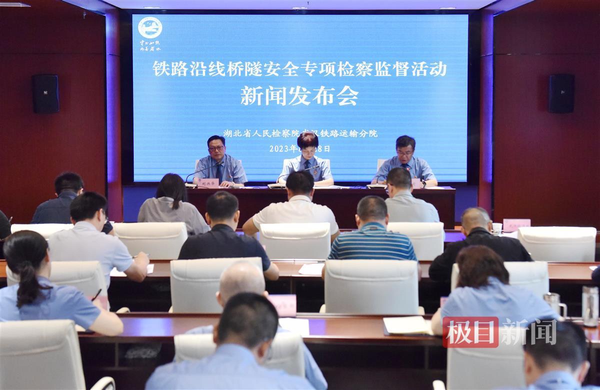 8月28日,湖北省人民检察院武汉铁路运输分院召开新闻发布会,介绍“开展铁路沿线桥隧安全专项检察监督活动”方案,通报武汉铁检机关消除铁路沿线安全隐患典型案例。