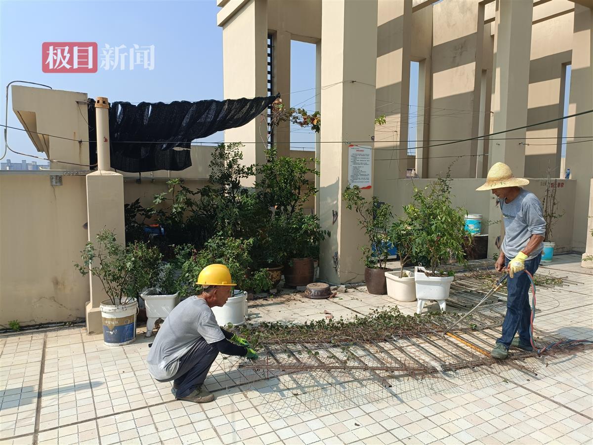 业主用铁栅栏圈占楼顶,用来种植绿植和堆放杂物,侵占了全体业主公共空间。8月29日,武汉市汉阳区鹦鹉街道综合执法中心表示,已依法拆除了汉阳华府2栋楼顶的违建,将公共空间还给全体业主。