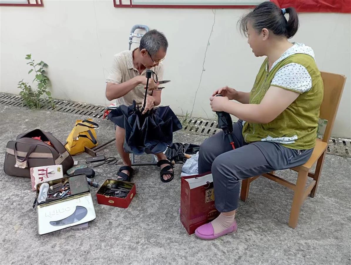 活动现场设有义诊、义剪、修鞋、修伞等惠民服务。在爱心义诊区,医护志愿者划分多个区域,分别提供血压测量、血糖检测、口腔检测等服务,针对居民的不同需求提供“一对一”式暖心服务,还根据居民的身体情况进行健康指导和疾病预防知识科普。