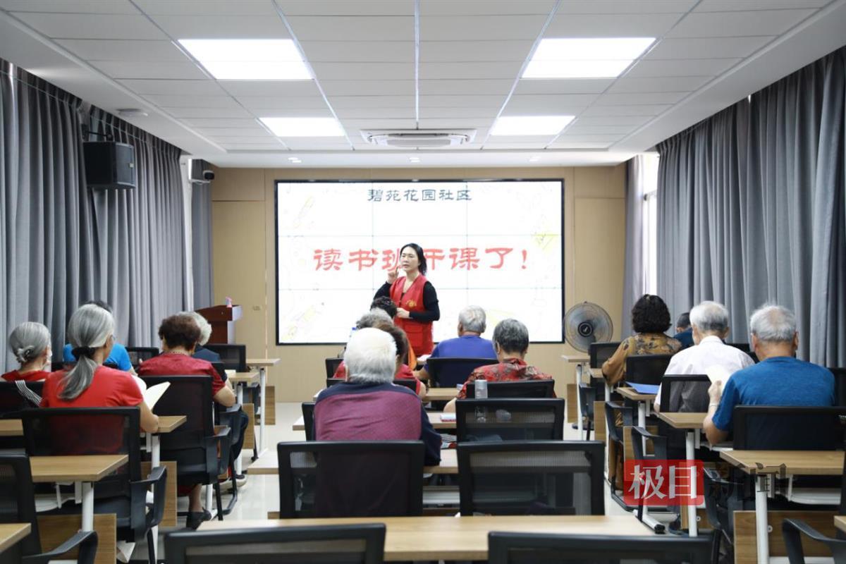 为扎实推进社区志愿服务活动,加强对社区老年大学团队的关爱,9月5日,武汉市青山区冶金街道碧苑花园社区与居家养老服务中心合办的读书班开课了,老年人在“家门口”就能享受特色课程,既方便又能丰富日常生活。