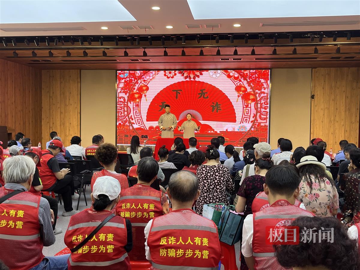 “犯罪分子很狡猾,最爱冒充公检法。大家一定擦亮眼,不要上当被讹诈……”伴随着快板的清脆响声,现场观众也跟着节奏打起了拍子。9月16日上午,武汉市公安局“平安武汉 共同缔造”宣讲队走进汉阳区江堤街江欣苑社区,围绕反诈防诈、禁毒、交通、网络安全等内容,举办了一场寓教于乐、精彩纷呈的宣讲活动。社区广场上,还设置了宣传服务区,市、区公安民警为群众现场提供法律咨询和办证办照服务,500余名群众参与活动。