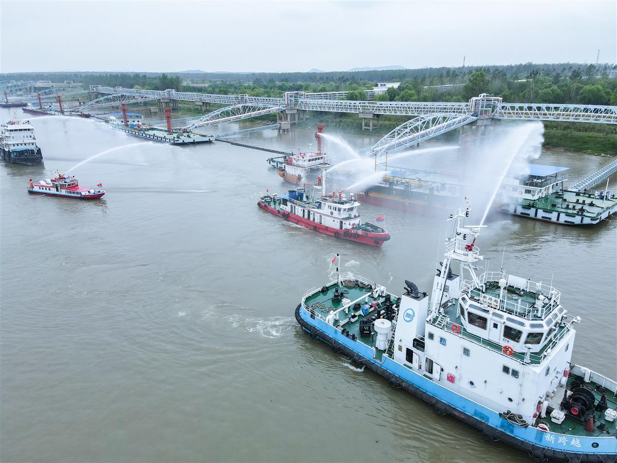 9月26日上午,长航武汉公安联合武汉消防救援支队水上大队、长江海事局阳逻海事处、武汉港航监督局阳逻执法六队、武汉恒阳化工储运有限公司、武昌船舶重工集团有限公司、中国石化武汉分公司等7家单位120余人在位于武汉阳逻的武汉恒阳码头4号趸船组织开展综合应急演练。