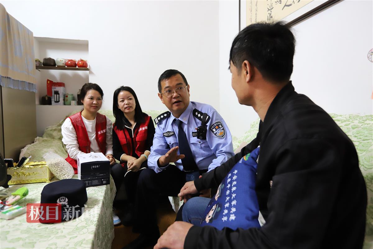 武汉东湖新技术开发区龙泉社区书记胡飞带领社区民警龙钧、禁毒社工来到社区康复人员陈建(化名)家中,送来慰问物质和孩子的学习用品,陈建说道:“太感谢你们了!这么多年,一直在帮我。”