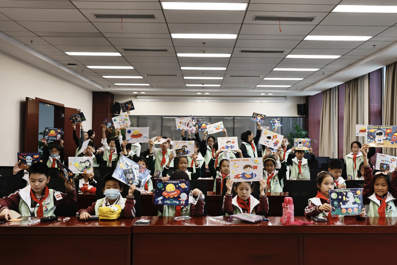 参观完毕,43名同学通过拼图手工还原那浩瀚蔚蓝的宇宙太空,并获颁三体动漫纪念章,在同学们的人生中留下重重的一抹印记。