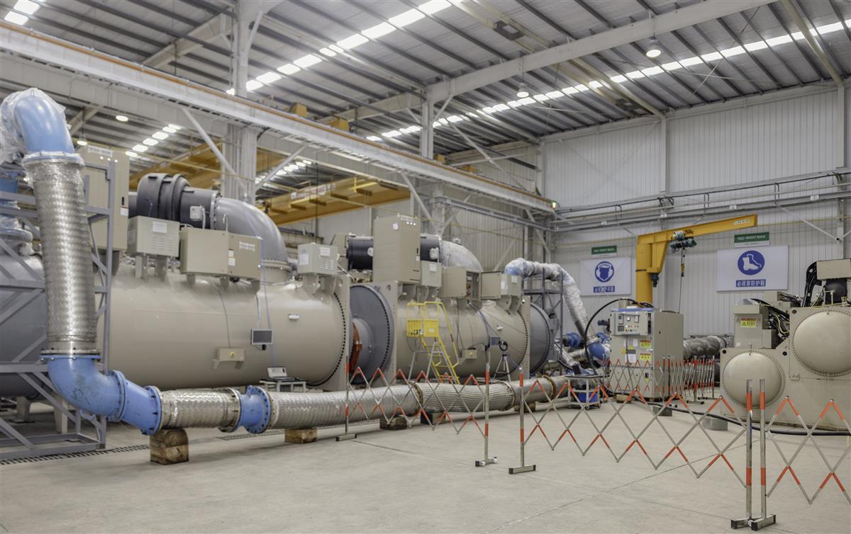 麦克维尔研发工程师陈博介绍,研发这套离心机组,以武汉工厂研发团队为主导,联合苏州、深圳两个工厂的研发团队,历时3年多时间完成,运行噪音低,制冷性能优异,对大气臭氧层无害且全球变暖指数接近零,较现有国标一级能效提高近15%。