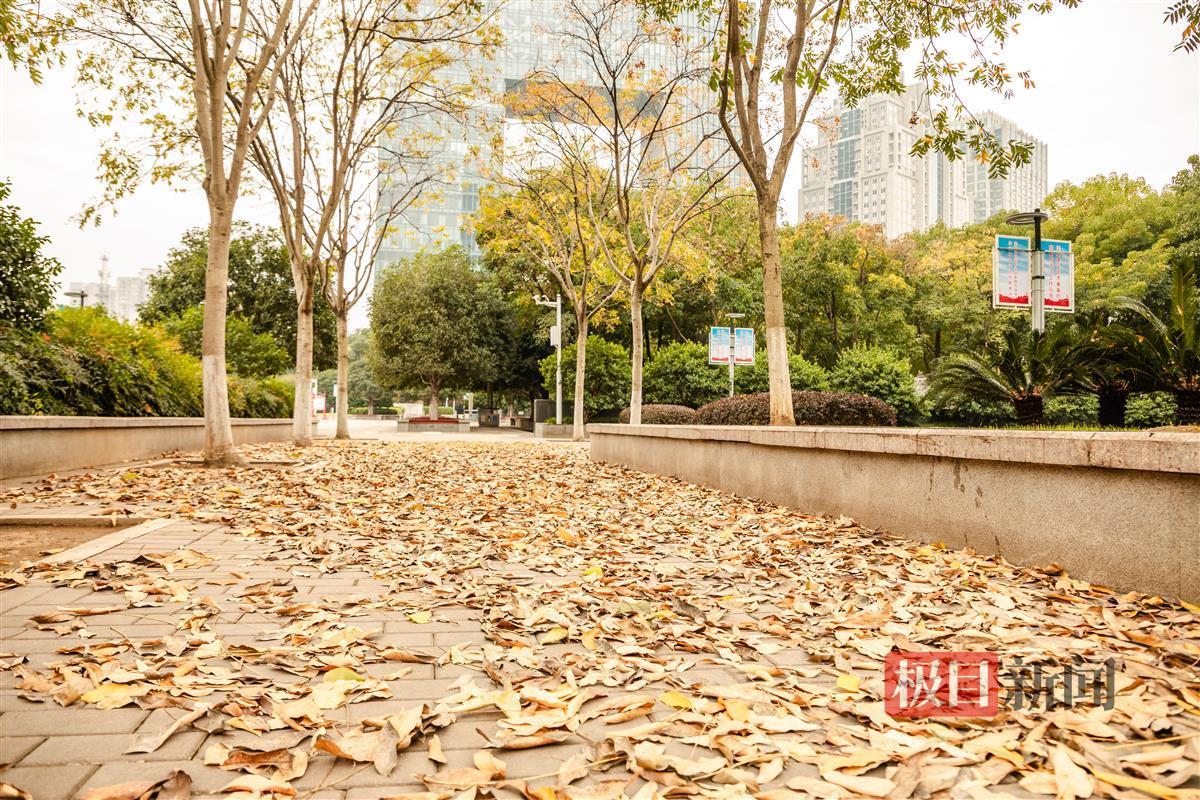 其实,落叶景观并不是简单的不清扫,而是对落叶的处理和保洁工作提出了更高、更精细的养护管理要求,“看着像是随意铺陈,其实保洁员会把落叶地毯里的垃圾清理掉,保证落叶不藏污。”洪山广场工作人员说,如遇下雨,则会把落叶全部收集起来。一般枯枝碎叶会清理掉,保留的大多是叶形完好、色彩明亮的落叶,努力寻求道路整洁与秋日美景并存的平衡点。