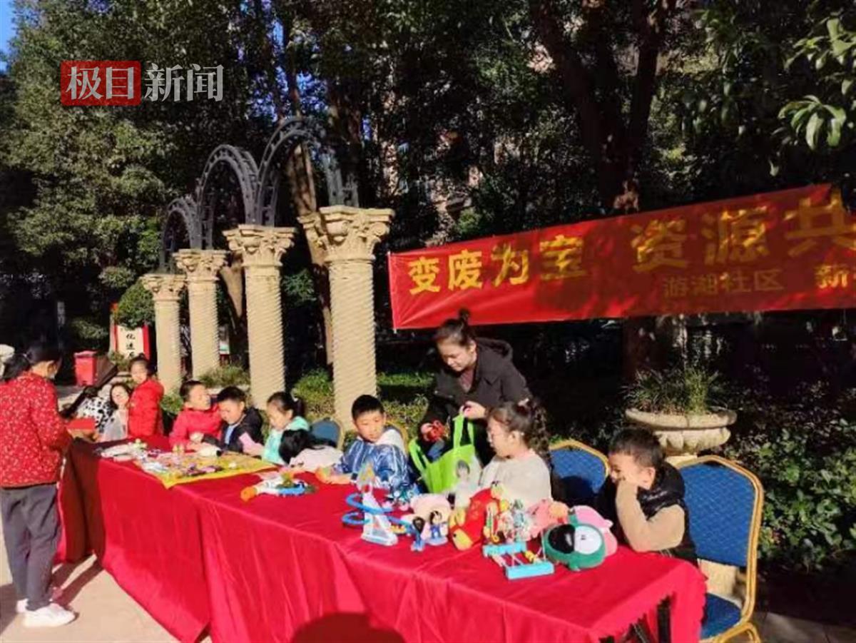 为缓解楼道堆积物品引发的安全隐患,让那些被闲置在楼道里的物品能变废为宝,2023年11月18日,武汉长江新区谌家矶街游湖社区联合新福物业开展“变废为宝 资源共享”跳蚤市场主题活动,发动居民们将闲置书籍、玩具、童车等通过跳蚤市场进行交换或售卖,进一步提醒社区居民珍惜资源,发扬勤俭节约的传统美德。