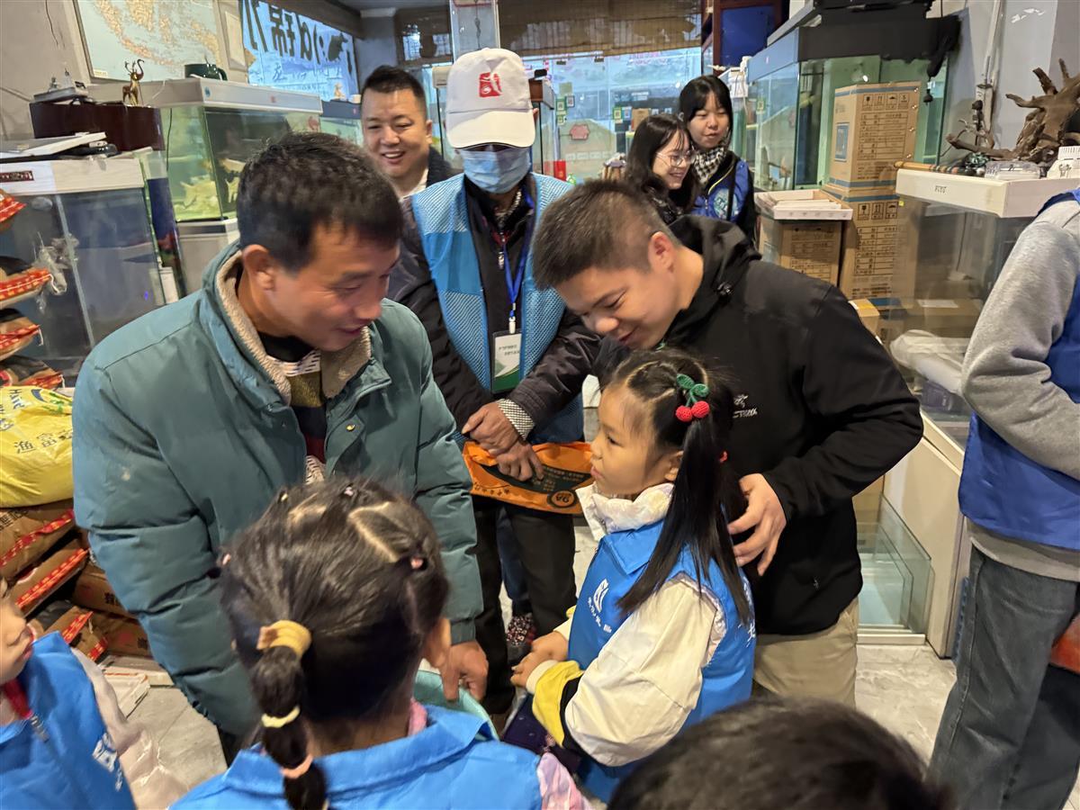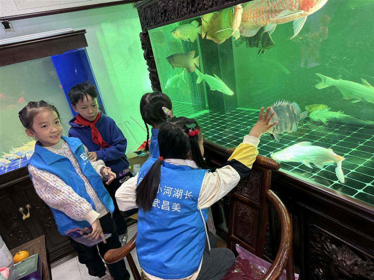 在了解了鱼类的相关知识后,小河湖长们分组踏入各类金鱼店铺,一方面向老板宣传不要把任何鱼类倒入长江、湖泊中,会造成生态的破坏,给本土鱼类带来严重的危害。另一方面他们也向来购买金鱼的市民宣传,一旦决定要把小金鱼带回家就要好好的养,珍惜它的生命,不要随便往大自然中放生。