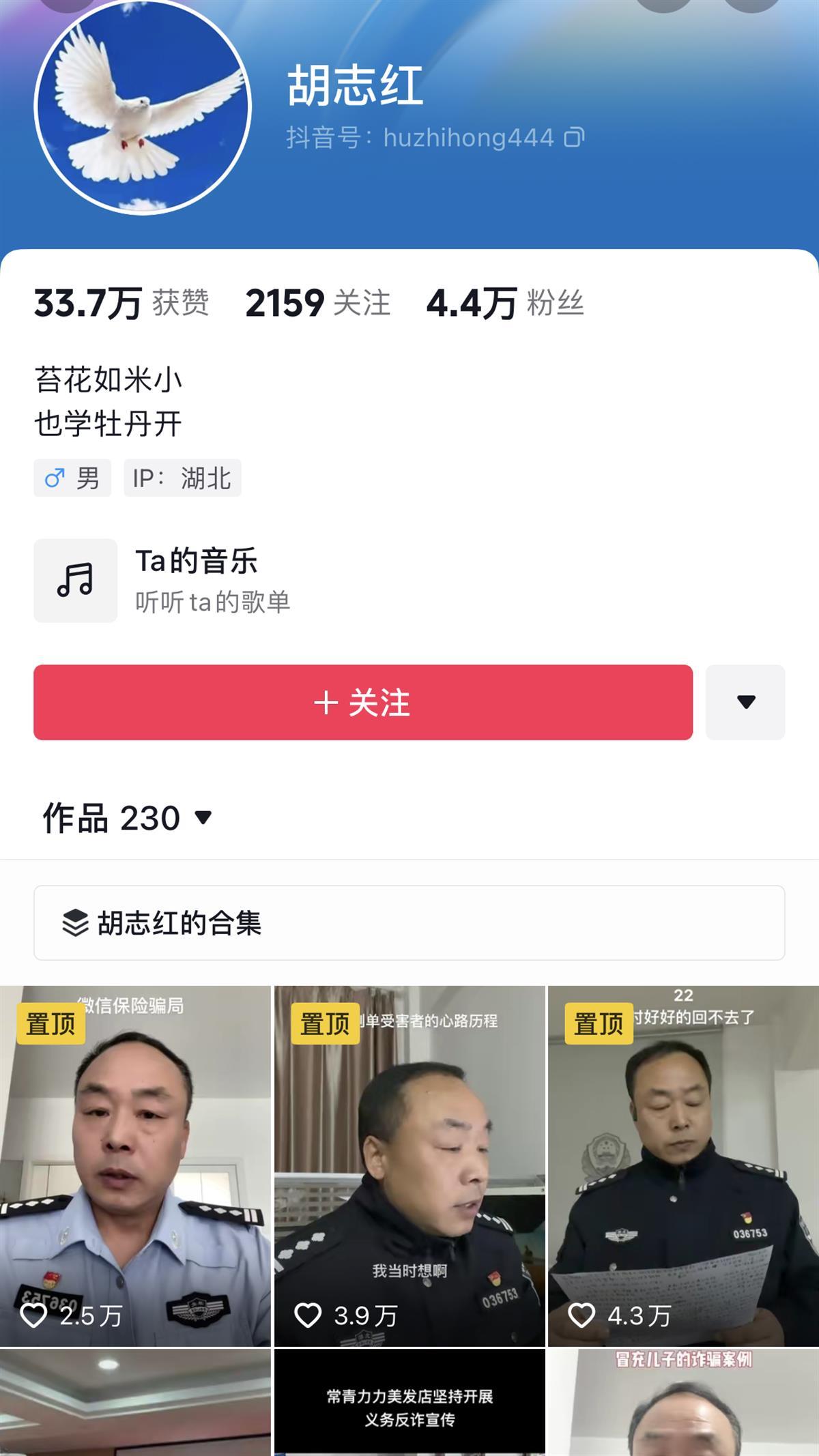 胡志红的抖音账号界面截图