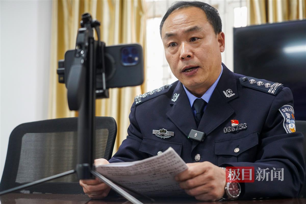 1月3日,武汉市公安局东西湖区分局常青花园派出所里,在抖音平台拥有4.4万粉丝的“网红”反诈民警胡志红不紧不慢地从包里掏出手机支架和麦克风,安装好后,拿出涂改了多遍的手写文稿,没有刻意的打光和背景,也没有开网红滤镜,清了清嗓子后便开始录制反诈宣传视频。