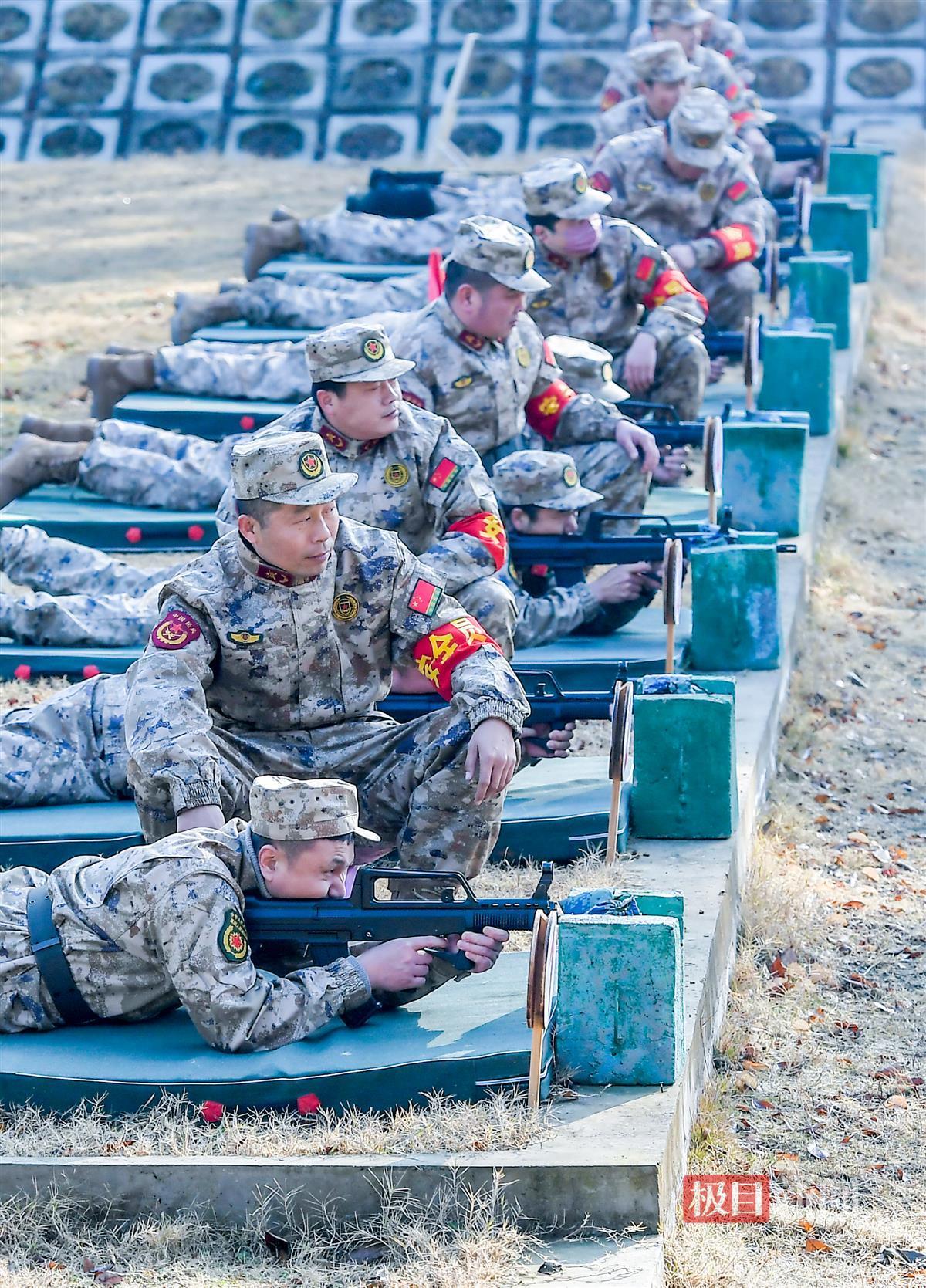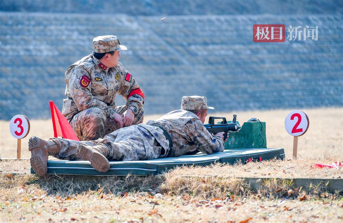 4日上午,射击场上,身着21式迷彩服的专武干部正在进行紧张的实弹射击训练。