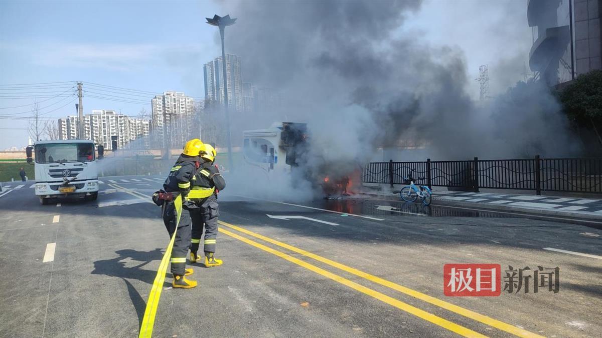 2024年1月4日中午12时20分,武汉市汉阳区知音大道赫山路某三岔路口处一辆房车起火。武汉市消防救援指挥中心迅速调集七里庙消防救援站消防员到场处置。