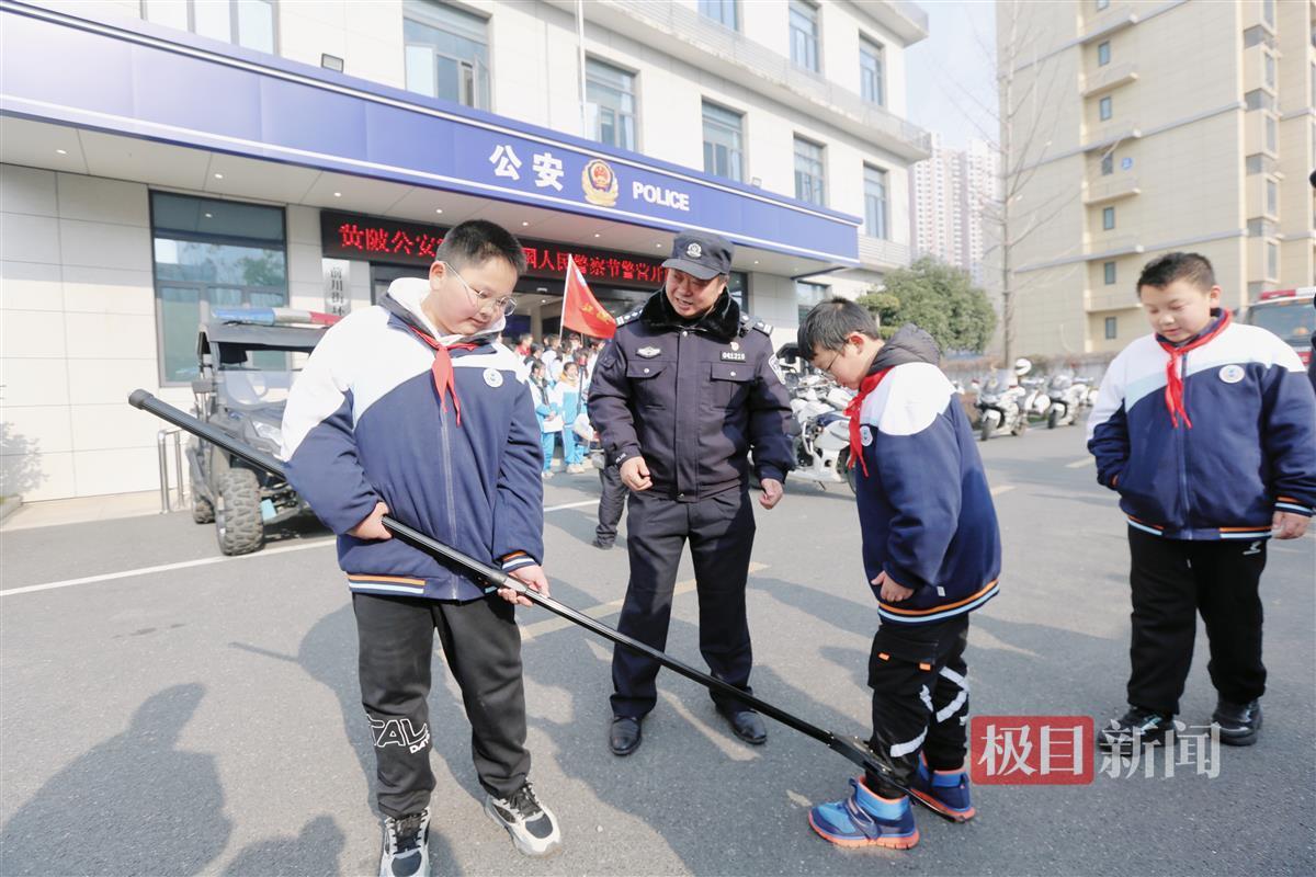 “这个钢叉你们倒是可以试一下。”民警亲自指导小朋友如何正确使用各种工具,加深了大家对警用装备的认知,为校园安全又增加了一把“安全锁”。