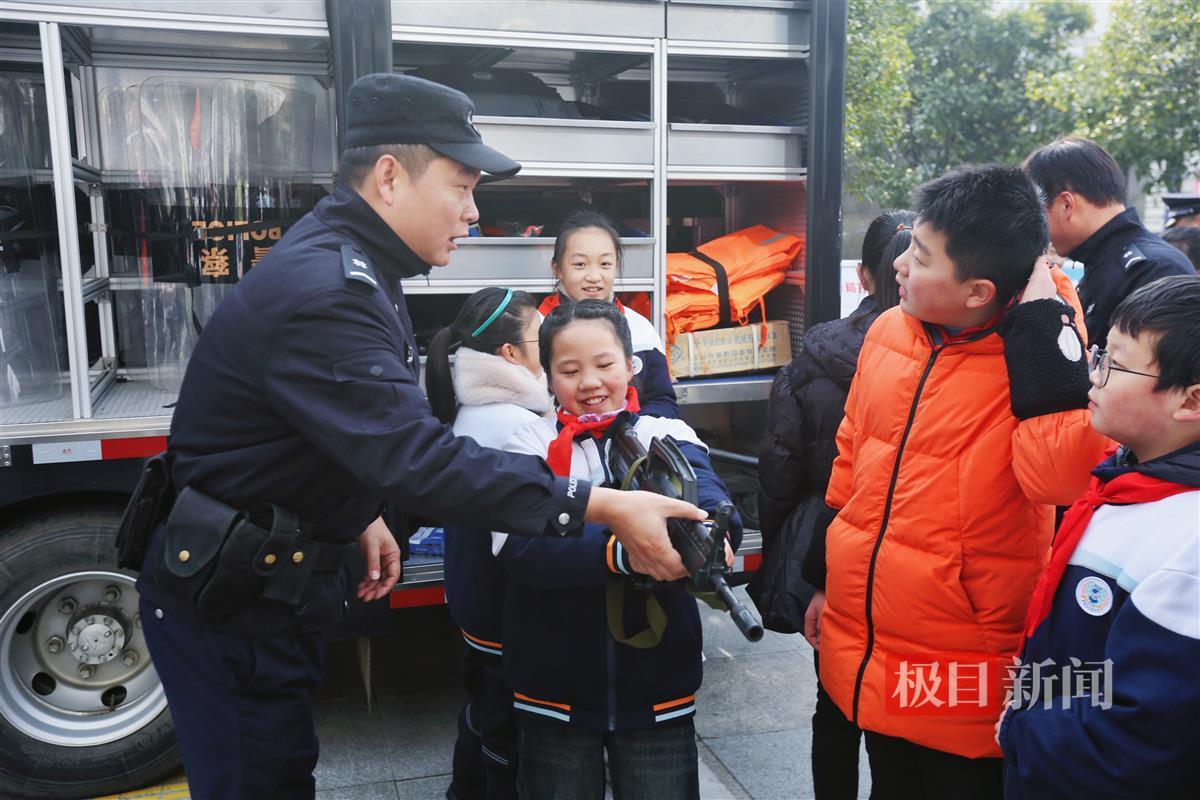 环城中学和实验小学的小朋友们仿佛走进了新天地,兴奋地冲在队伍最前面,好奇地端详着每一件警用装备。巡逻大队队员们热情地帮助小朋友将防暴头盔和防刺服穿戴整齐,留下一张张帅气的合影。