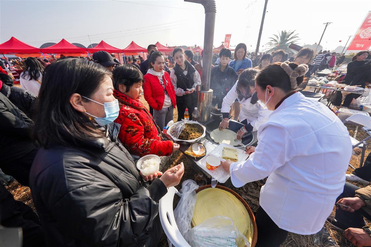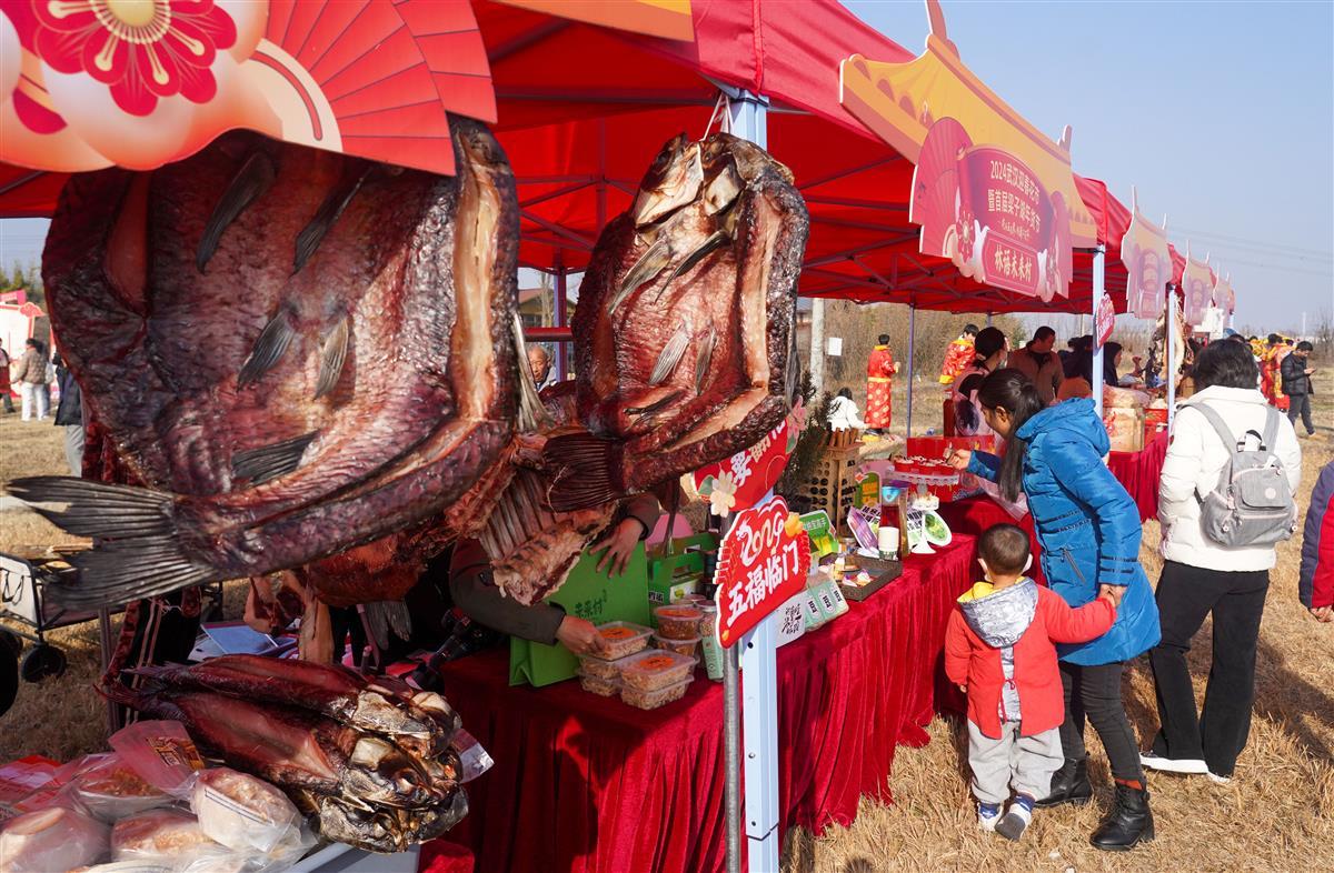 开幕式现场,一个个红色小摊前人头攒动。年货展销现场,多家商户演示各种农特产品的制作工艺流程,游客们现场体验手工制作的过程,揣糍粑、摊豆丝、炸肉圆等美味农家风味免费品尝。还有腊鱼腊肉腊肠等传统民俗展示,精品绣球展、精品盆景展、精品琉璃展等特色产品展示。通过体验,现场的游客踊跃购买本土农特产品。