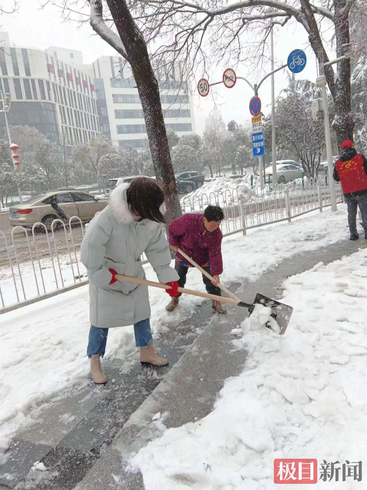 “郭阿姨,您怎么又来了?”“昨晚雪又下大了,怕早上出门的行人会摔倒,就和志愿者们一起来清理一下……”最近3天,往来江岸区花桥街道长惠社区附近的居民们,都会在路边义务除雪的队伍里看到了一个熟悉的身影——71岁的长惠社区居民郭珍玲。