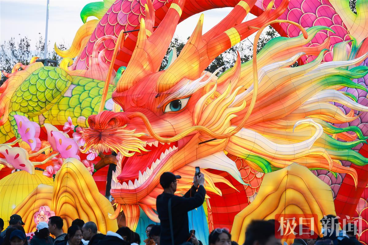据悉,此次第八届武汉园博园花灯会以“万千气象 盛世龙年”为主题,运用现代科技手段与传统彩灯工艺,融入传统龙凤、国潮市集、卡通动物、神幻梦境等元素,通过光影变化打造八个主题版块,共布设有近60组花灯,观灯游线约为2800米。(图片均由通讯员提供)