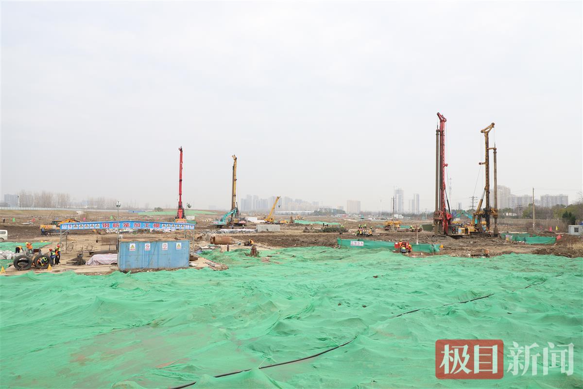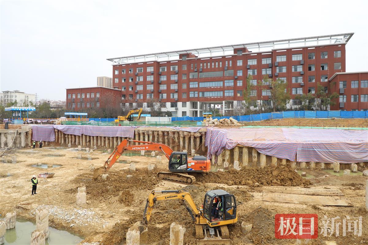 在长江新区胜海大道与江湾北路交会处,武汉长江新区外国语学校(暂用名)建设项目也在抓紧组织实施。该项目是长江新区重点民生工程,总占地面积361亩,总建筑面积23.5万平方米,将新建教学楼、宿舍楼、行政楼、图书馆、食堂等建筑,学校设置108个教学班,其中初中部60班、高中部48班,计划于2026年9月全部完工。中建三局长江新区外国语学校项目负责人介绍,工地已于节后复工复产,目前现场正在进行鱼塘清淤及场地土方平整工作。
