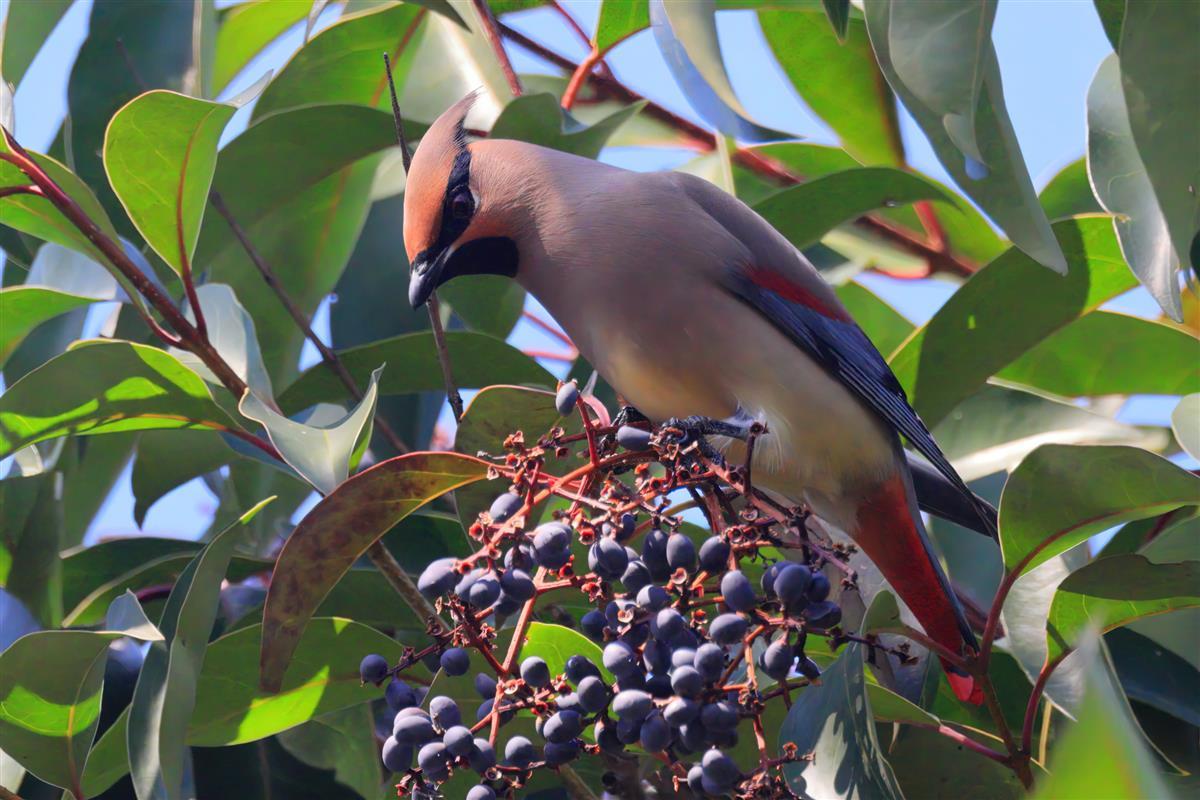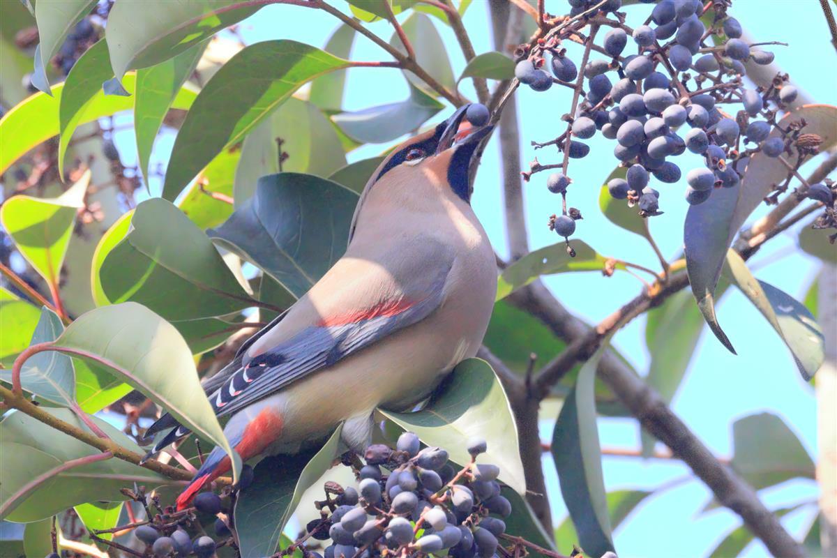 这次小太平鸟被武汉市观鸟协会会员何国民发现,是在大年初三,当时龟山上游客还比较多,小太平鸟视若无人,悠哉地站在女贞树上吃果子。