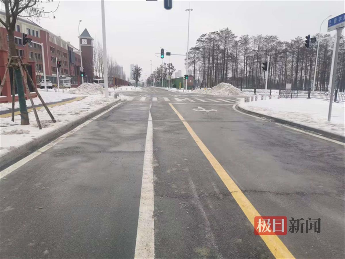 “黄狮海学校门口道路打通了”“美联实验学校门口可以通行”“将军路第三小学、将军路中学、尚远幼儿园除冰作业已完成……”一条条通往学校的柏油路面已见本色。