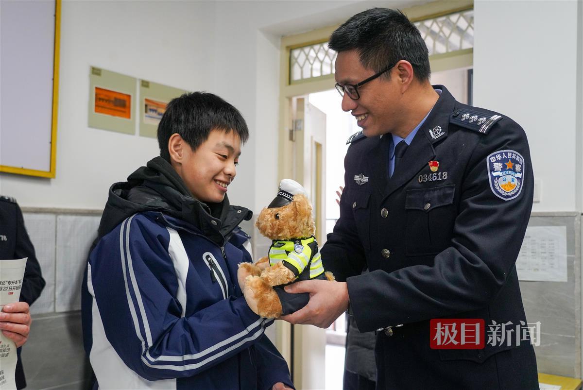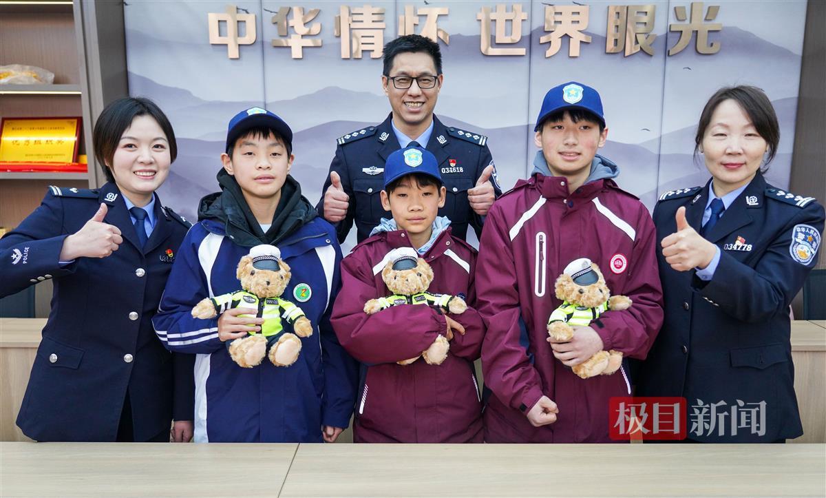 洪山区交通大队副大队长、两次赴国外维和的英雄、一等功臣胡连军说道:“武汉遭遇恶劣天气,许多部门都忙个不停,你们做了我们交警当天正在做的事情,正是因为有你们的帮助,这个世界才变得如此美好!”胡连军向三位少年赠送了警察小熊玩偶,并呼吁孩子们在日常生活中注意交通安全,时刻提醒同学和家长遵守交通法规,争做文明出行、平安出行的代言人。