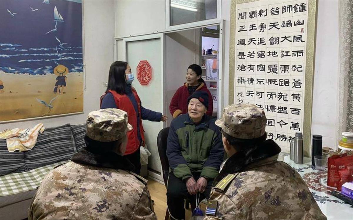 社区干事和海军工程大学小蓝帽志愿服务队一起上门慰问独居老人